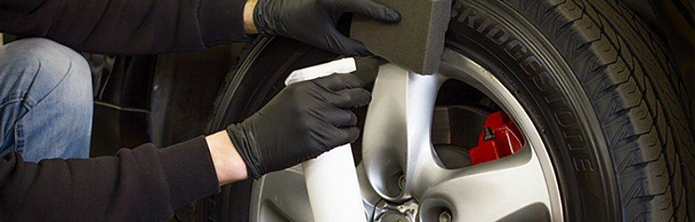 Обработка внешней поверхности шины специальными веществами, позволяющими восстановить первоначальный черный цвет, а также усилить его интенсивность